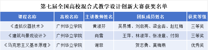 广州华立学院教师在第七届全国高校混合式教学设计创新大赛中喜获佳绩!