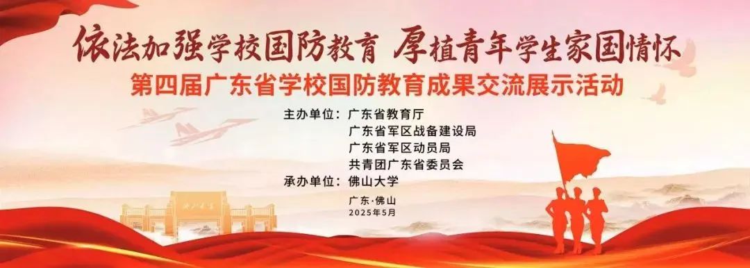 2025年5月9日-11日,第四届广东省学校国防教育成果交流展示活动在佛山大学举行。全省21个地级市教育局、165所学校代表、观摩团代表等7000余人会师佛山大学交流展示国防教育成果。本次活动由广东省教育厅、广东省军区战备建设局、广东省军区动员局及共青团广东省委员会主办,佛山大学承办。