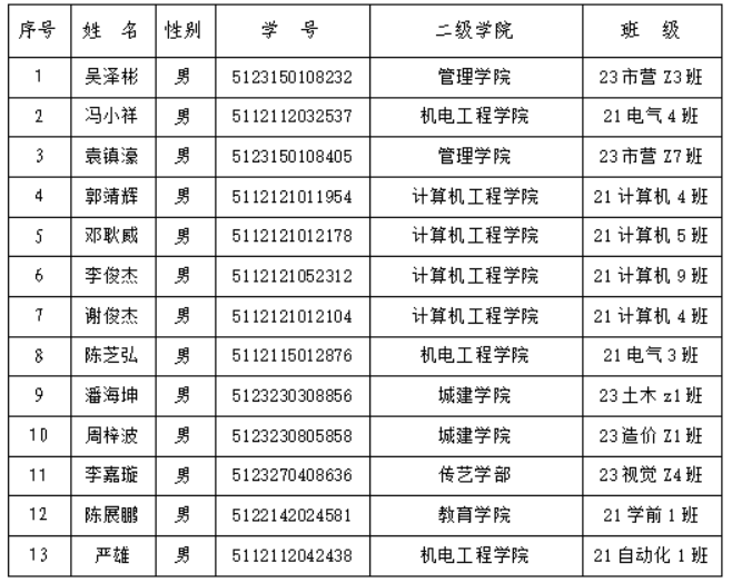 根据省教育厅《关于做好普通高校毕业班学生参军入伍工作的通知》文件精神,我校开展了2025年春季入伍毕业班学生预毕业工作。经学生个人申请、党委武装部进行审核等工作程序,现将我校2025年春季入伍毕业班学生预毕业学生名单予以公示,名单见附件。