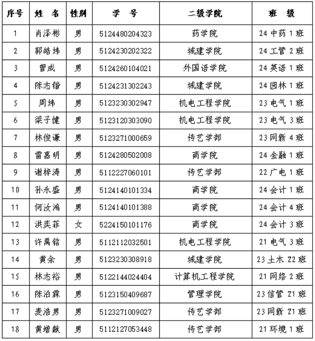 根据教学厅〔2015〕3号文《关于进一步做好高校学生参军入伍工作的通知》文件要求,服役期间按国家有关规定保留学籍或入学资格,退役后2年内允许复学或入学。我校开展了2025年春季入伍士兵保留学籍工作。经学生个人申请、党委武装部进行审核等工作程序,现将我校2025年春季入伍士兵保留学籍学生名单予以公示,名单见附件。
