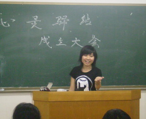 学部心灵驿站站长彭娟在成立大会致辞 |