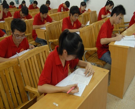 学部学生党员们正在认真考试,仔细答题中…