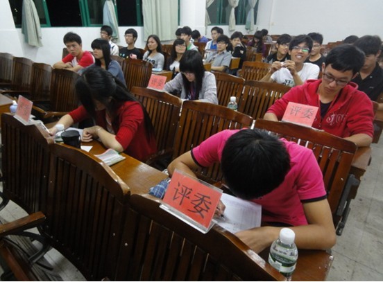 评委组根据评分标准,细心认真给每位演讲者评分,并做好相关记录