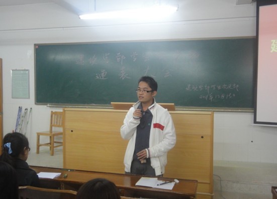 郭花老师宣布建设学部学生党支部通表大会正式开始,继而宣读大会议程