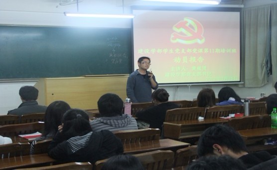 根据学院党委的党课学习教育工作部署,结合学部的实际情况,建设学部于2012年3月15日,在2号楼开展建设学部学生党支部党课第十一期培训班动员报告学习教育活动。本次党课培训工作旨在深化党的基本理论、基本路线、基本纲领和基本经验教育。