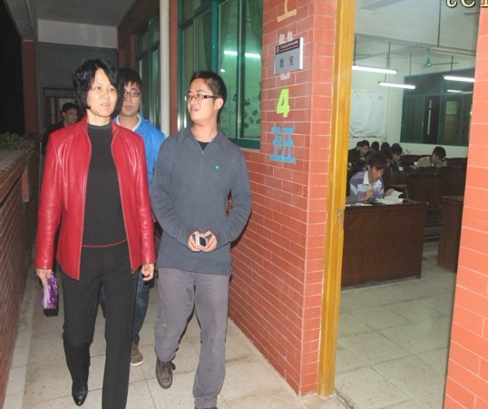 党委书记王锦秀书记以及黄叔贤书记视察各个班级上党课的情况