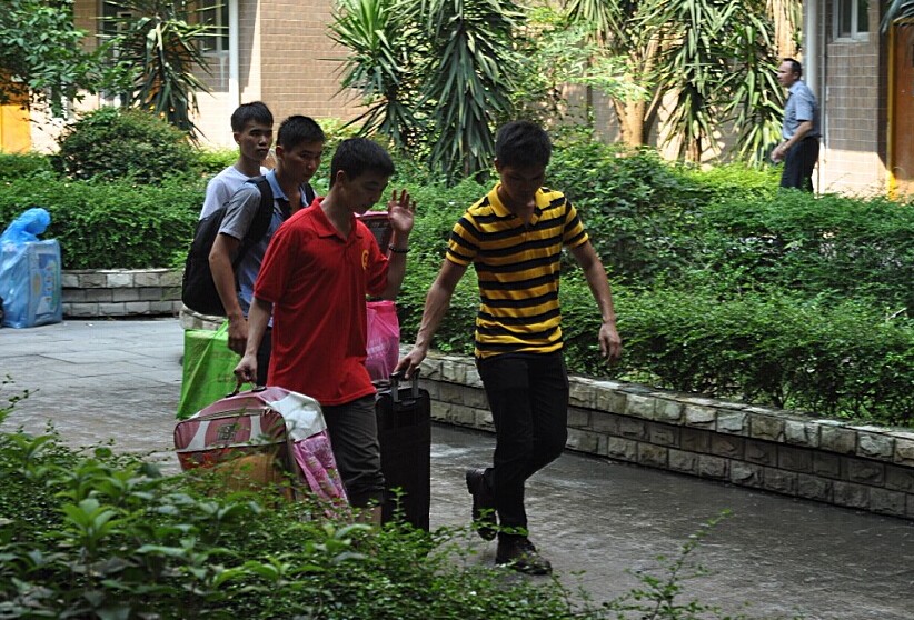 城建学部党总支党员、迎新志愿者们热心为新生提行李,并带新生入住宿舍。
