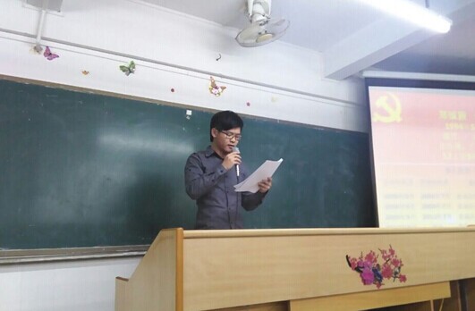 大会第一项:发展对象宣读入党志愿书,表明加入中国共产党的决心