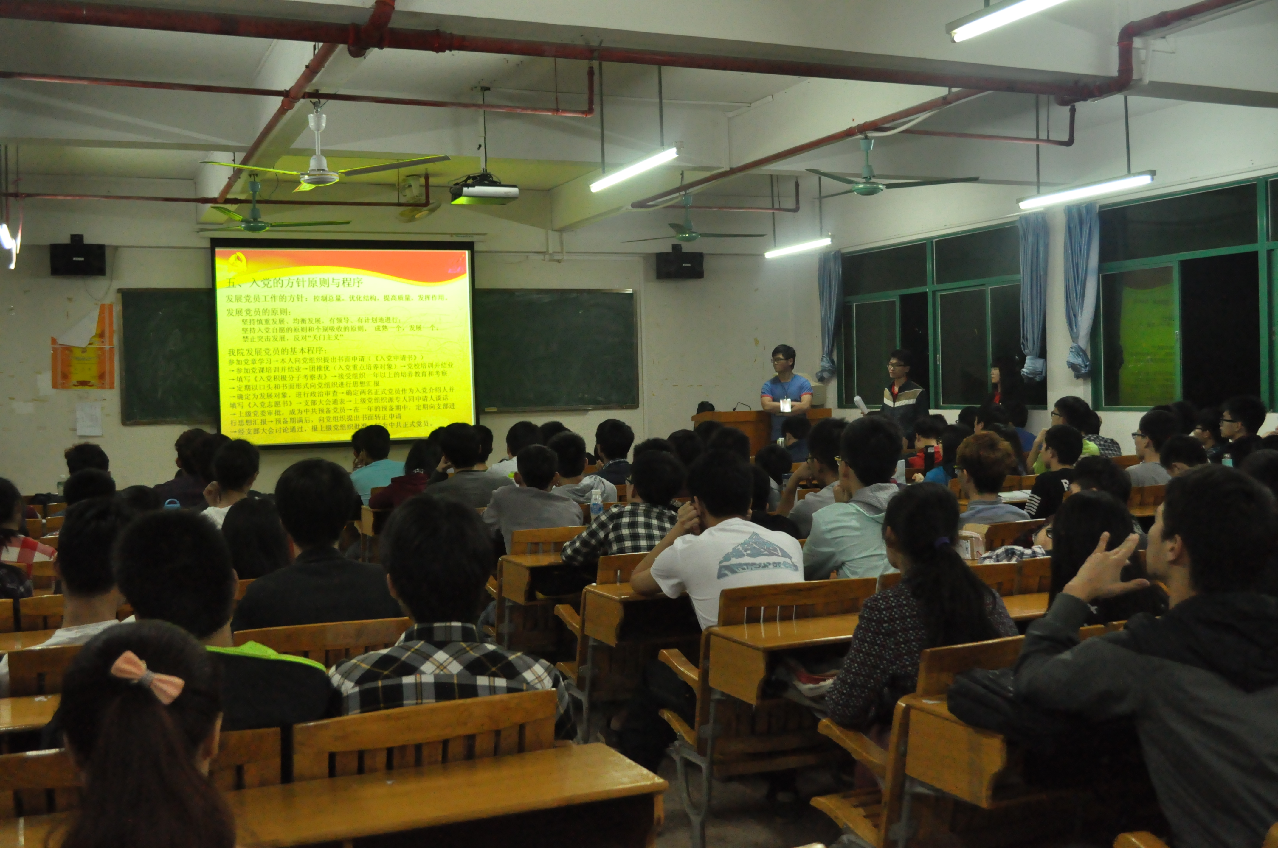 根据学院党委关于第十四期党课学习教育工作部署,结合学部的实际情况,城建学部于2015年3月17日19点至21点,在5号教学楼开展城建学部党总支第14期党课第一讲。本次党课培训内容主要是深刻学习党章,端正入党动机。