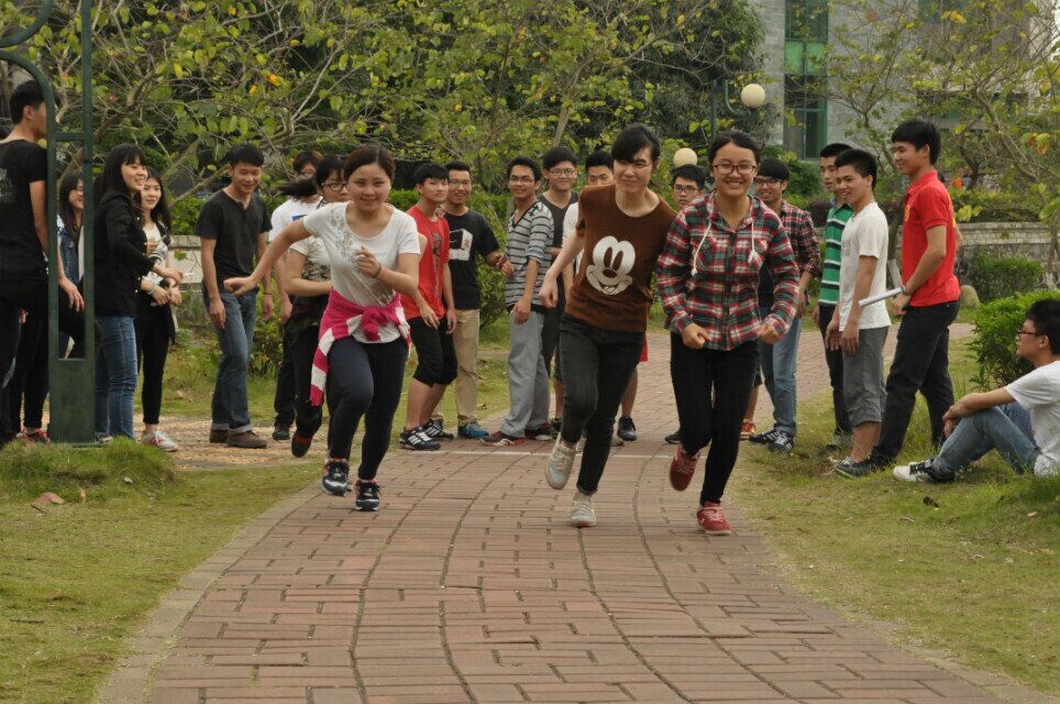 活动第三项:华立湖铭牌保卫战。在铭牌保卫战中,每位组员都在尽自己最大的努力保护自己所在组的女生的铭牌不被对手撕掉的同时要撕掉对手的铭牌,无数的欢声笑语充斥着活动现场。