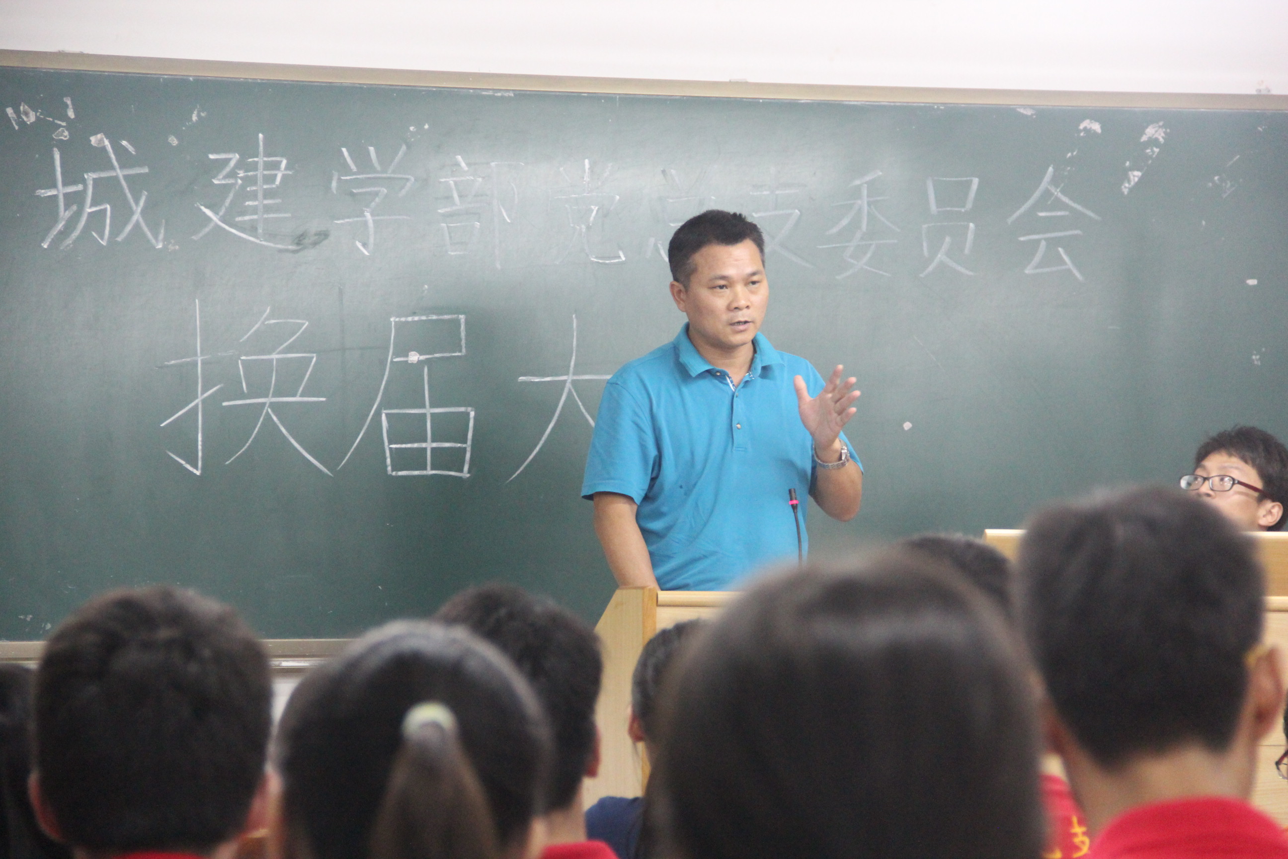 根据学院党建工作部署,严格按照高校党建标准,城建学部党总支委员会于2015年9月24日在2号楼201举行城建学部党总支委员会换届大会,华立学院党委书记刘怡军,城建学部党总支书记黄叔贤等领导出席了本次会议,本次大会由梁春燕担任主持。大会选举黄叔贤、陈静、王晓轩、郭彩霞、邹志强(排名不分先后)分别为城建学部党总支委员会总书记、组织委员、宣传委员、纪律委员、青工委员。