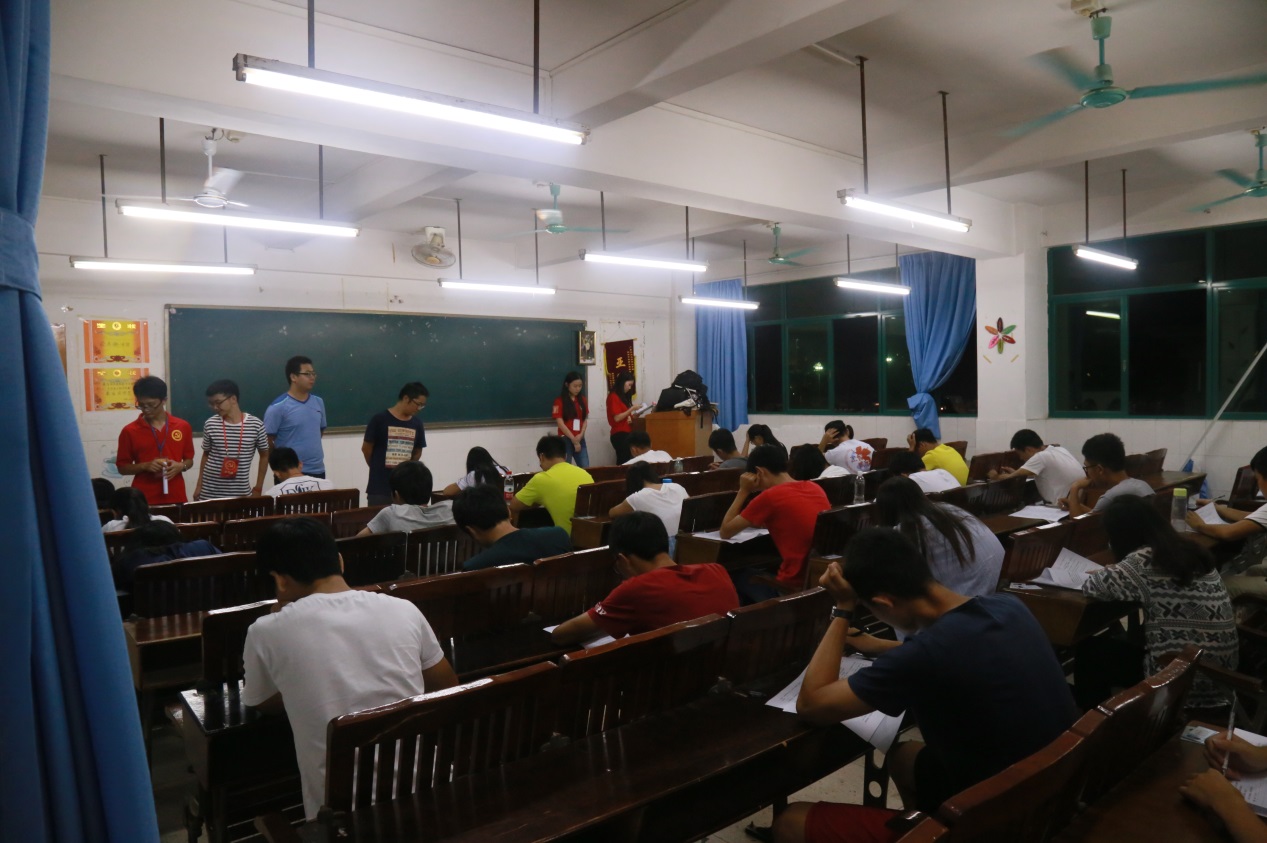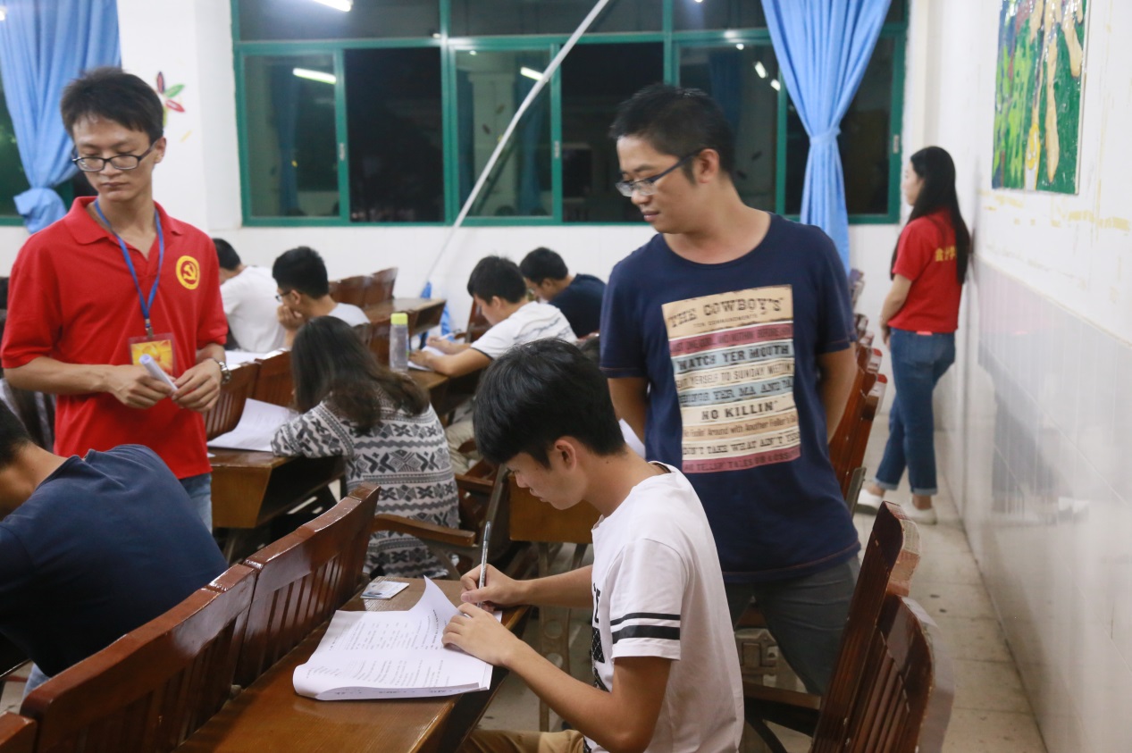 经过几天的党课教育学习之后,为检验党课学习教育给新生带来的效果,督促我们寻找不足,查漏补缺。我总支于2015年10月29日在2号楼进行第15期的党课笔试考试,作为入党考核重要的一部分,党总支尤为重视。总书记黄叔贤巡考了所有的班级,为更好履行监考职责,提高考试氛围等作了指导性建议。本次考试中作弊0人,迟到0人,旷考0人,上交有效答卷率100%。