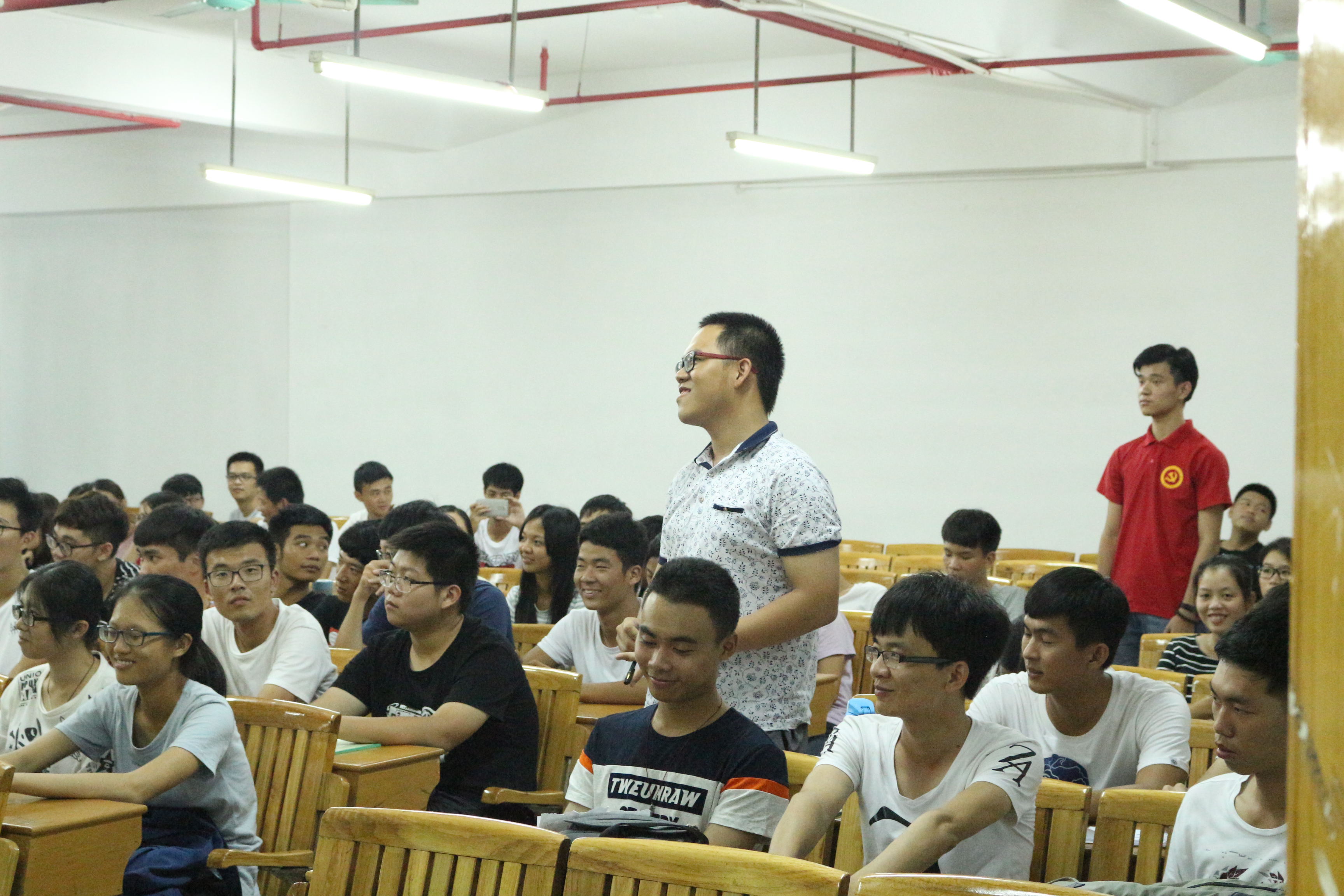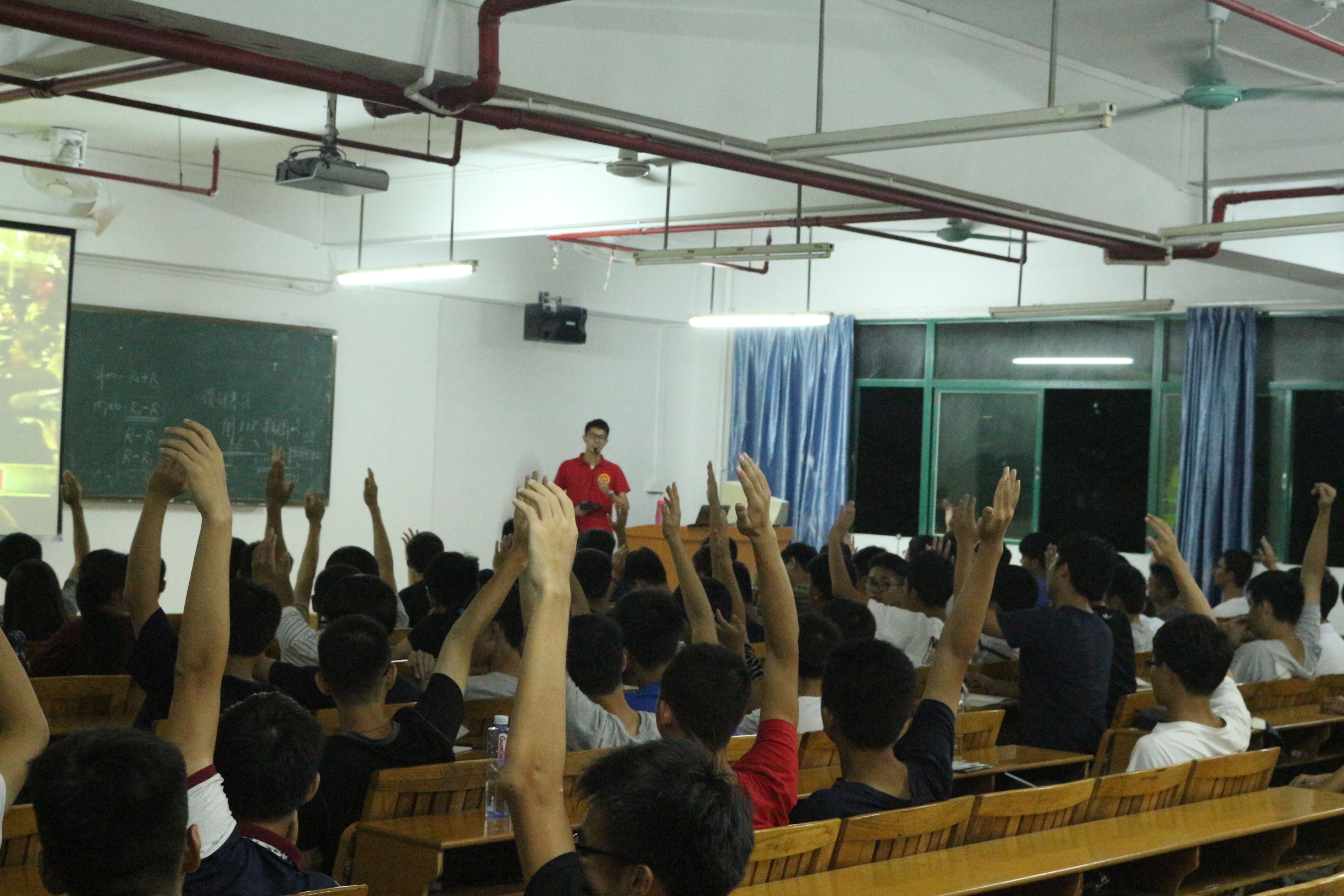 党员同志们在为新生讲述党章知识,新生也积极踊跃地参与互动,积极回答问题,课堂纪律很好,许多新生勇敢地举手提问和虚心地听讲。