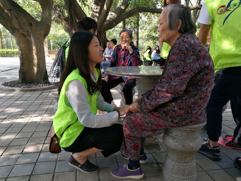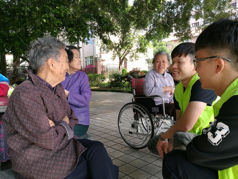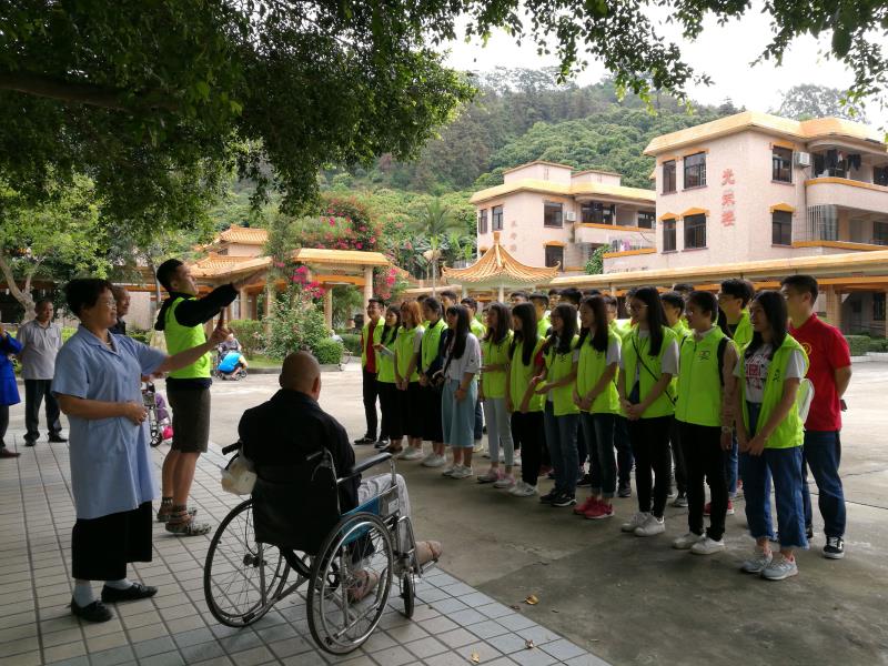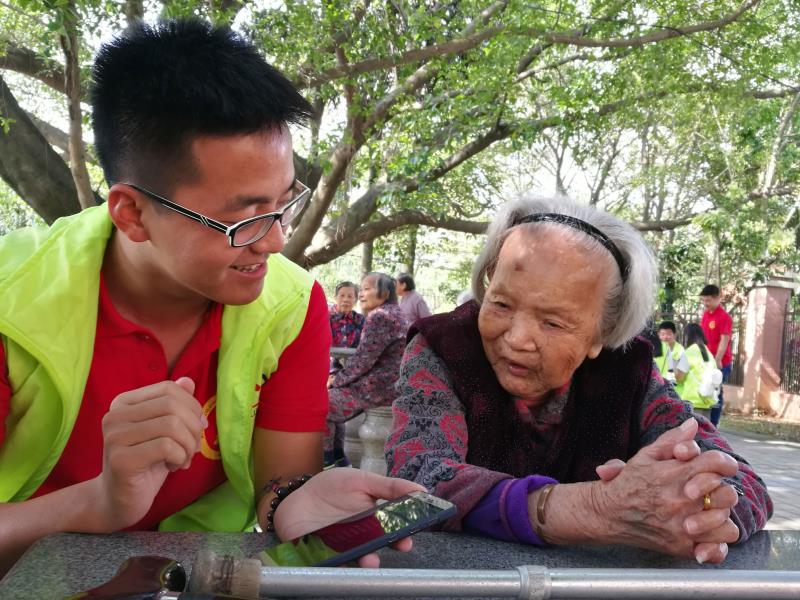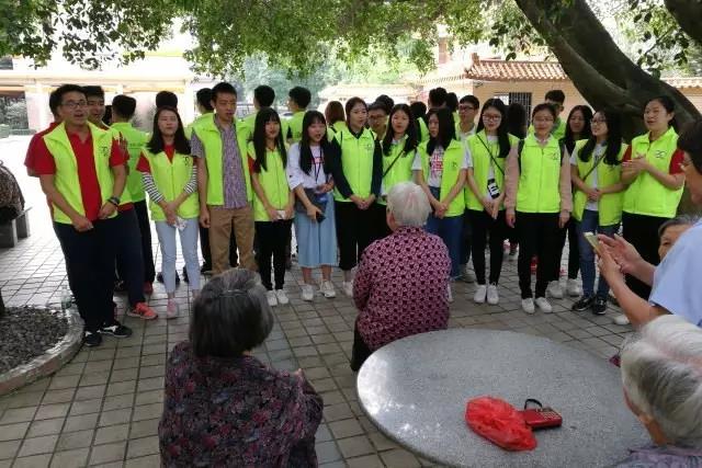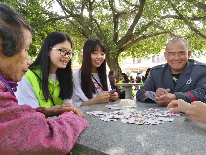 到达目的地后,同学们穿上义工服慰问老人,与老人聊天、打牌。简单的互动不仅给老人们带来欢乐,也让同学们体会到与老人交谈带来的温暖。