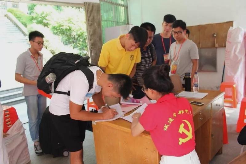 八点未至,志愿者们已经开始忙碌,他们有条不紊地带领新生走绿色通道、排队缴费、填写信息,接着带领新生到宿舍。楼下等待的志愿者帮助新生把行李搬上宿舍,汗水浸湿了衣衫,体力快到极限,却也不懈怠。