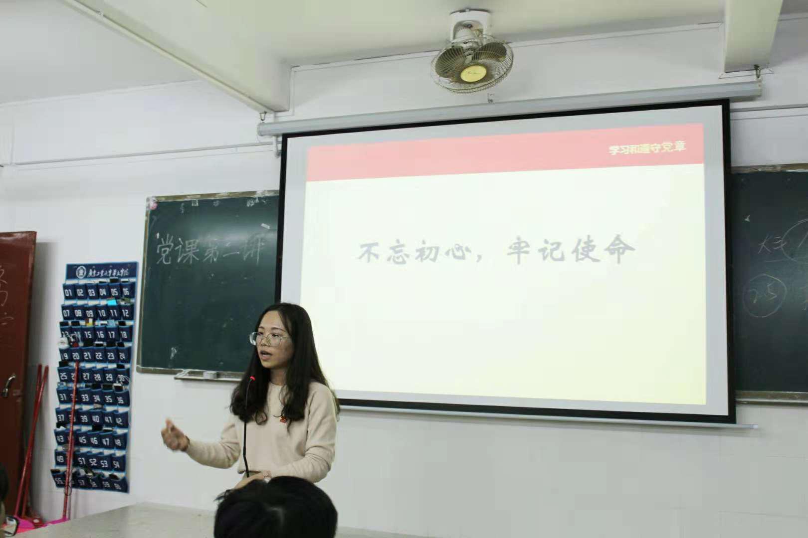 党员向学员们解释了两会精神以及两学一做的含义;并建议学员们努力提高党性觉悟,尊崇党章,遵守党规,树立脚踏实地,坚持不懈的生活态度,贯彻两学一做方针,树立远大目标;还强调以优秀党员为榜样,贵在知行合一,重在身体力行。随后,还播放了有关视频,让学员了解到时事热点,也对党员有更深一层的认识。