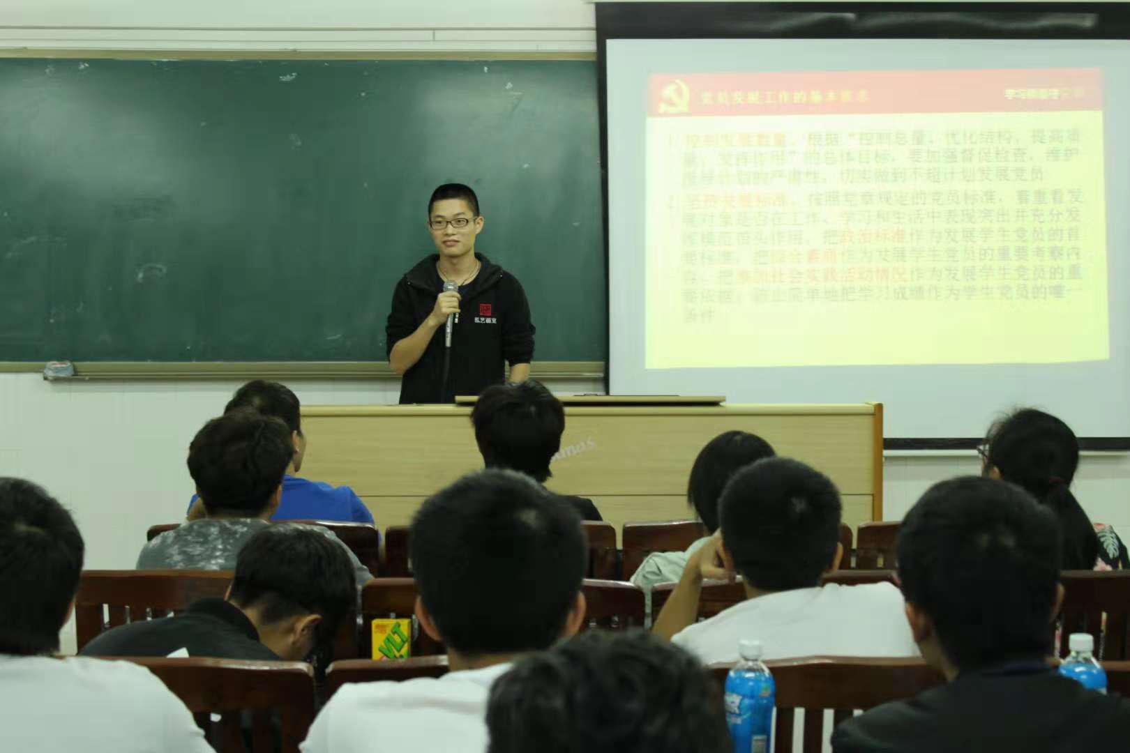 开讲之初,梁老师强调不能把学习成绩作为发展党员的唯一标准;并强调想要成为一名合格的共产党员,还应从生活、工作等多方面要求自己,全面提高自己的思想道德修养以及综合能力,对国家社会发展做出贡献;除此之外,他还介绍了我院发展党员的基本程序。黄建丽老师表示学员应该认真听党课,努力提高自己的思想道德修养,并且向学员讲述了自己对港珠澳大桥的施工见解。