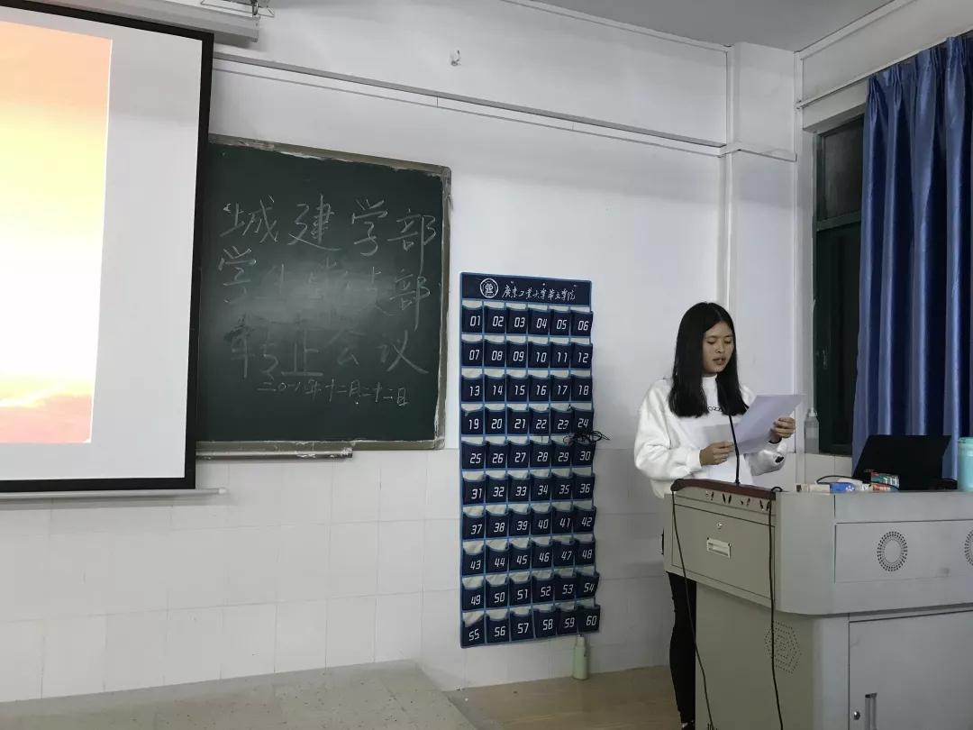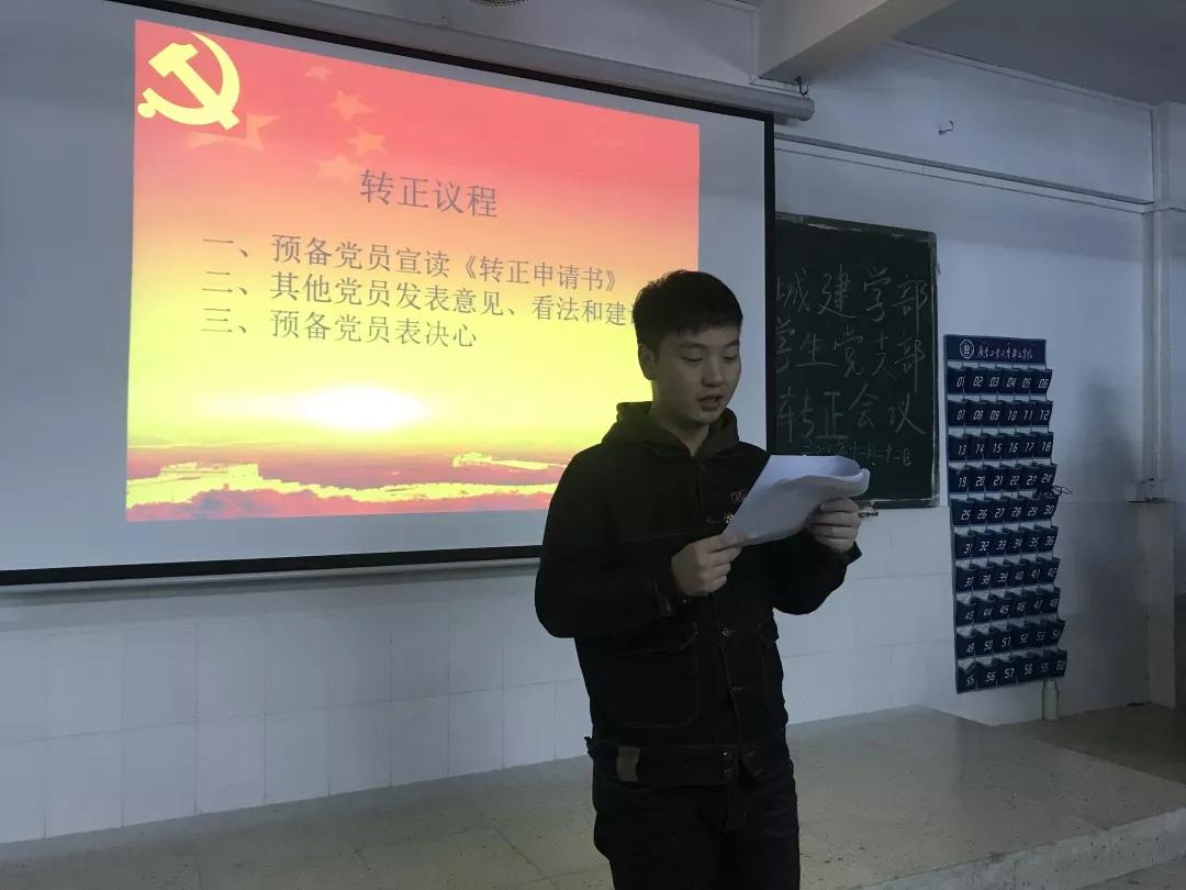 12月22日,城建学部党总支于二号教学楼301召开预备党员转正大会,参加本次大会的有城建学部党总支书记蔡凯武,学生党支部书记刘芳,学生党员,6位预备党员以及党务工作者。