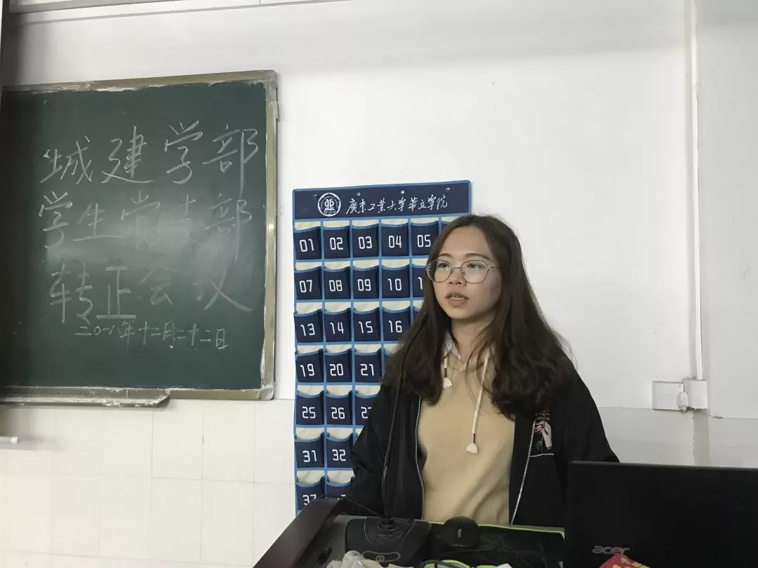 经在场全体党员无记名投票后,城建学部学生党支部宣传委员赖婉华宣读决议。