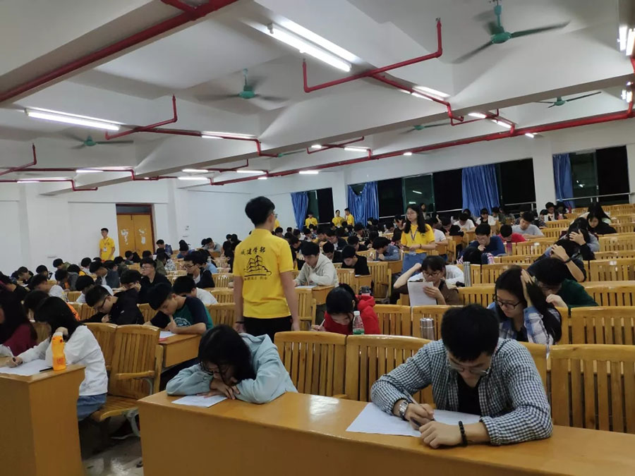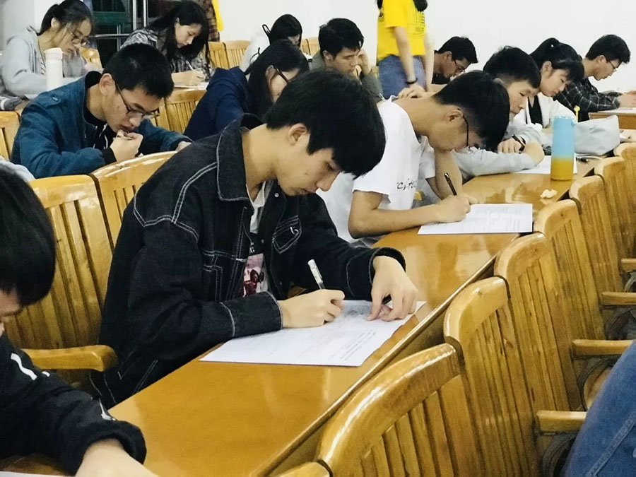 比赛开始前,工作人员宣读考试规则。紧接着,比赛正式开始,同学们冷静、认真地填写试卷,挥笔如风,下笔如有神。从他们从容自信的眼神中透露出对红色经典和党团知识的熟悉。监考人员本着公平公正的原则,认真为同学们监考。