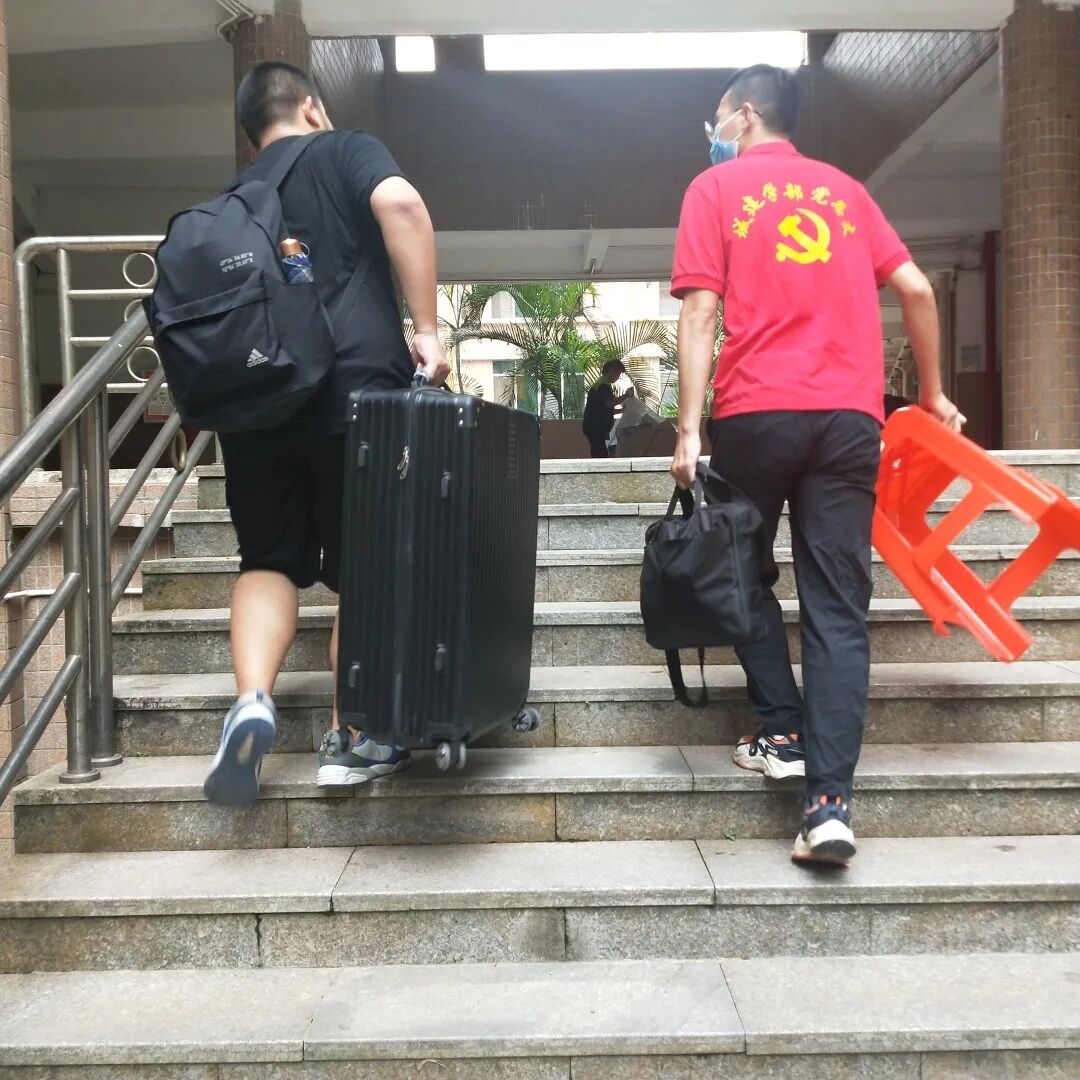 在完成注册登记流程后,党员同志们积极地指引新生们到宿舍,并帮新生把行李搬运到宿舍。无论是大太阳还是下雨天,城建学院的党员同志们都积极参与到迎新工作中来,不怕苦不怕累,用实际行动践行着“全心全意为人民服务”的宗旨,充分发挥了先锋模范作用,使我院的新生感受到了党员们热情的服务态度。