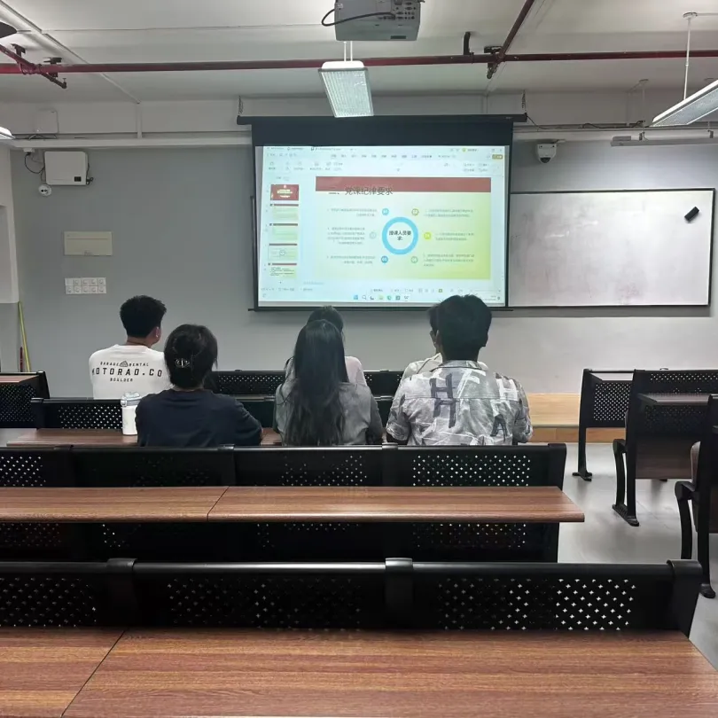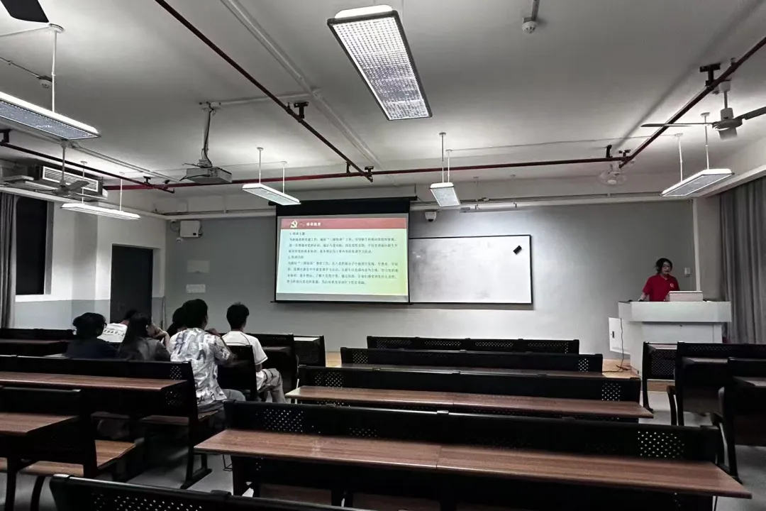 党务秘书田诗淇同学向在场党员强调党课纪律要求及党课培训的重要注意事项,希望授课党员们在党课讲授中既能系统、深入地传递党的理论知识,也能多与学员开展提问、讨论等互动交流,进而帮助学员深化对党的认识与理解。