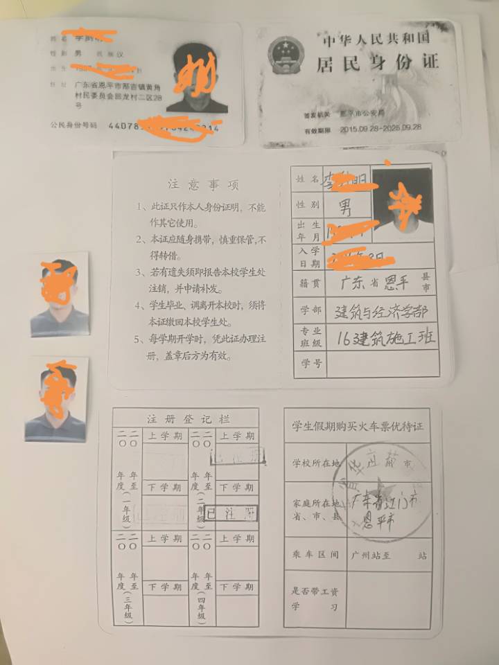 3:身份证、学生证复印件及照片(白底)按模板要求贴好,同时提交在校证明,均交纸质版(一式两份)。一寸(25×35mm、像素295×413px,经扫描打印和像素太低都属于不合格照片)白底相片4张(二张分别贴在表格右上方的“相片格”里(表格),另二张在后面写上名字,贴在身份证及学生证复印件页)
