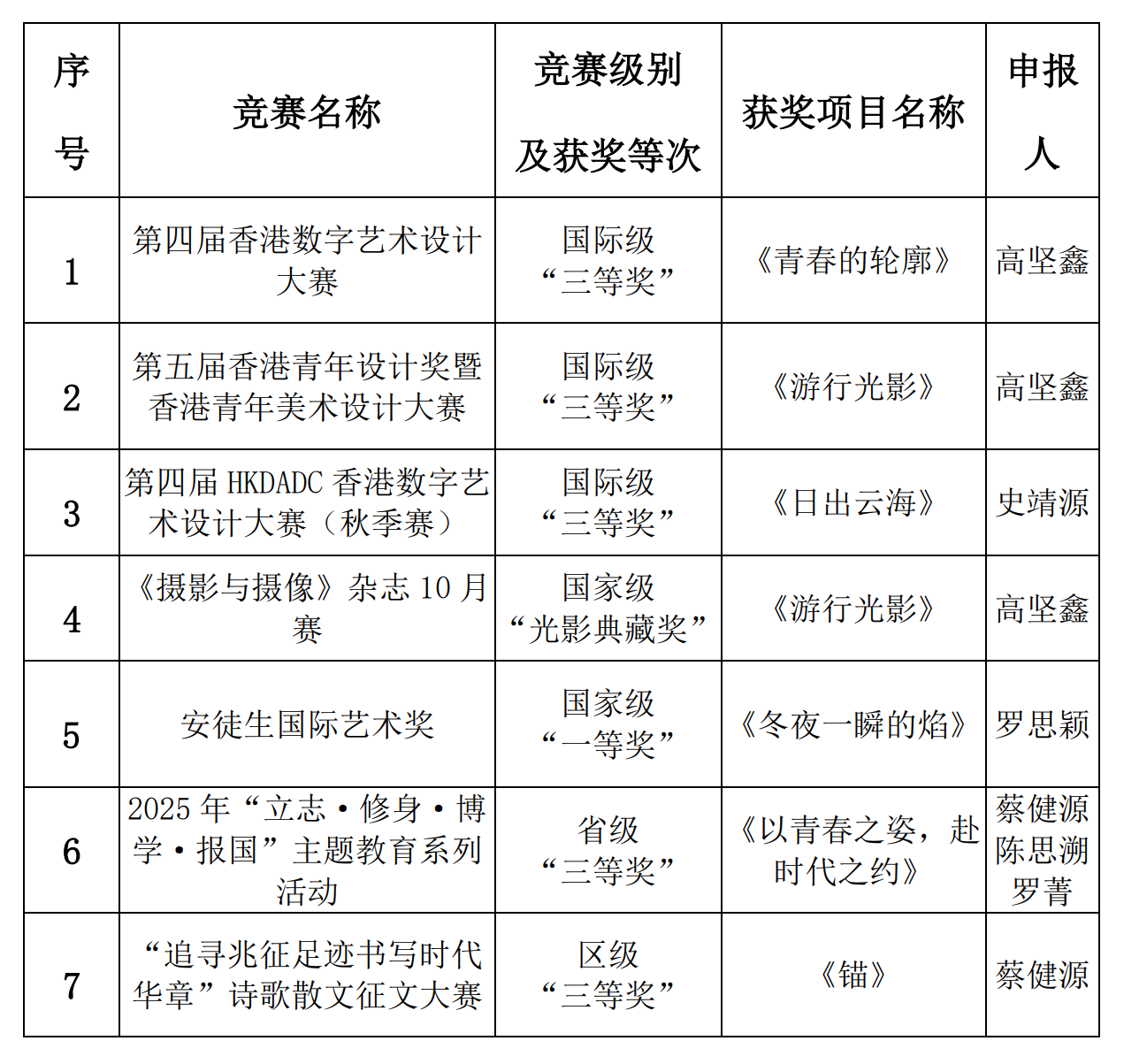 根据《关于申报2025-2026学年第一学期广州华立学院学生文体艺术活动及竞赛奖励的通知》文件要求,经城建与资源勘探学院团总支学生会组织申报、材料审查以及评审等程序,现将城建与资源勘探学院学生文体艺术活动及竞赛奖励申报结果予以公示,具体如下(排名不分先后):