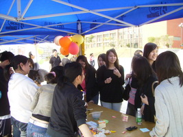 靓丽女生,欢乐女生节 作者:土木系 发布时间:2008-03-11 00:00:00 浏览次数: 次 【字体:小 大】 图片资料:系学生会在图书馆前摆摊与女生们玩游戏赢奖品 3月6日,在系学生会副主席梁琼和女生部部长叶苑组织下,众多干事齐努力,女生节摆摊活动搞得非常成功。 活动吸引着一批又一批女生,她们有的前来玩游戏、有的许愿!在他们的尽情高兴的同时,也送出了我们土木系学子的美好心意:祝所有的女生节日快乐! 图片资料:1,夹波珠游戏;2,飞镖游戏; 分享到: 【打印正文】