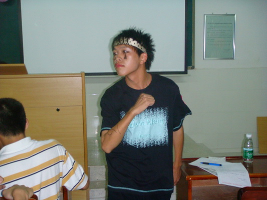 踏进2-301,迎来的就是一片人的海洋,漫步进去,这场晚会神秘的面纱慢慢揭开,这是一场找不到极富动感的晚会,找不到欢歌嘹亮的晚会,在这里只有神秘和夸张。各班代表模特与化妆师的亲密合作,他们创造出一个个出人意表的造型,漂亮的装扮令人目不暇接,加上动感的音乐,现场的气氛一次次掀起高潮。