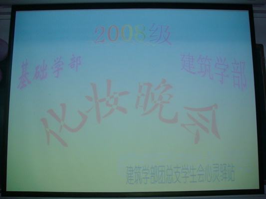 2008年10月17日晚,在学部心灵驿站的组织下,08建筑学部同学参加一场别开生面的化妆晚会。晚会还对模特做出评选,评委有心灵驿站站长的彭娟,团委副书记陈海明,黄静,团委副主席黄劲斌,助理辅导员吴柯,宣传部代表黎嘉颖。