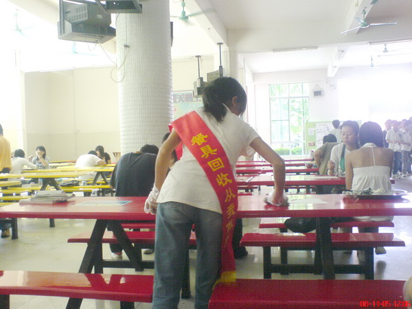 一直以来,大部分同学都没有注意到要自觉回收餐具的问题;在饭堂,笔者可以看到,很多同学在用餐后把餐具留在桌子上就离开了,并没有把餐具放到了回收地点;又因为工作人员有限,很多餐具得不到及时的回收。这种现象为后来的同学带来了有空位却坐不了的无奈,这也是饭堂不够座位,不够餐具问题的主要来源。针对这些问题,饭堂派出了“文明大使”,也确实发挥了很大的作用。 |