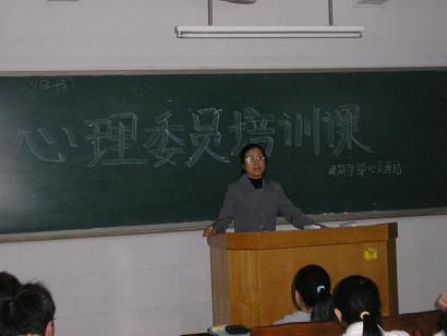今天,党支部书记刘洁为我们建筑学部的心理委员们上了一堂具有深刻教育意义的培训课.课上,刘书记针对此前学校学生跳楼事件作了简短的说明,同时跟心理委员们探讨如何发现与防范学生的不正确的心理行为,并举例说明了很多情况下学生出现的行为与他们的心理之间的联系.使学生们受益匪浅,深感工作的不容易,同时也明白肩膀上责任的重大!刘书记强调只有做好同学之间的沟通,才能更好的了解同学们平时的心理需要,才能更好的使建筑学部变得更加和谐!