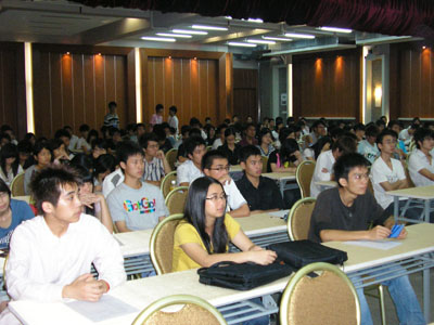 接下来是学生会主席林羽能的发言,发自内心的感想,出自对学生会感情,感动了在场的每一位。“是金子的总会发光,但要到让人看得到的地方”,主席一开场就说道,“我们要表现出来,否则即使你有才能别人也不知道”。在谈到这里,主席特别指出学生会是为大家服务的,它的所有支出都用在公众上,用在学生会的工作上,并不是有些人所想的那种为利益做事的地方,不会有人为了自己的私欲而乱用职权。主席还以自己的家庭情况为例,并说到自己在学生会做事的情况,对学生会的热情,自己在学生会中所得到的。
