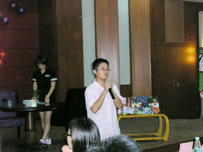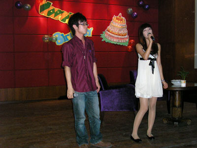 晚会以访谈的形式开展,主持人邀请了六位寿星代表,他们分别是顾俊斌,李宇鹏,王浚宇,佘湛辉,邓锦华,崔建锋。其中,李宇鹏同学为大家演唱了两首歌曲,动人的旋律让人陶醉不已。崔建锋同学在会上向自己的母亲表达了谢意,感动了在场地每一个人。每位寿星都在访谈期间收到两个惊喜:就是朋友对自己的评价和祝福,以及现场抽礼物。气氛几度推向高潮。