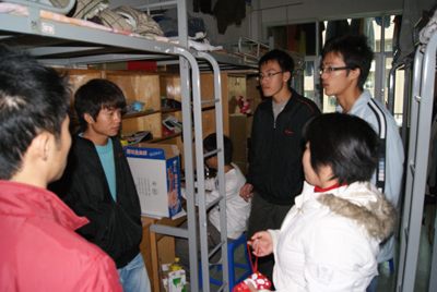 我学部老师关心学生生活情况,探访学生宿舍 作者:土木系 发布时间:2009-11-23 00:00:00 浏览次数: 次 【字体:小 大】 为了表示学部对同学们的关心,2009年11月19日建筑工程系团总支书记唐丰老师到我学部学生宿舍对同学们的生活情况进行考察。期间,唐丰老师提醒同学们冬天来了,要注意保暖工作。某些宿舍存在不足的地方,唐丰老师也提出了整改要求。最重要的是由于最近社会上流感情况比较严重,她希望同学们要保重好身体,注意宿舍卫生,做好预防工作,不舒服时要及时向班委汇报。 通过这次的考察使同学们感受到了学部对同学们的关心,加深了同学们对学部的属感。 分享到: 【打印正文】