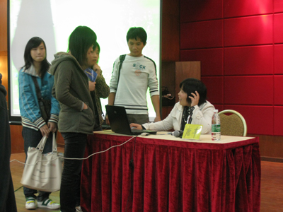 至17:00点整,听众把讲座遇到的问题写在纸上,交给唐丰老师,她在台上现场为听众一一解答。