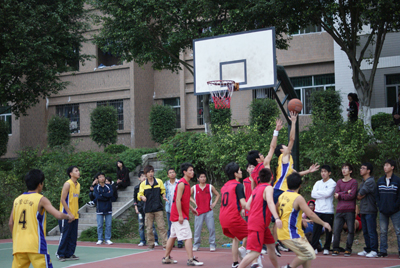 下午四点,A组比赛率先开打。分别是09工管(5)班对阵09工管(6)班、07国土(1)班对09工管(4 )班。