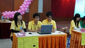 在亲友团热烈的欢呼声下,各参赛队伍依次进场,各工作人员有序就位,比赛正式拉开了序幕。参赛队伍来自学院内各个学部,由各个学部挑出两位同学作为代表选手,比赛内容主要由五个环节组成,分别是必答题环节,抢答题环节,考验眼力环节和观众主持互动环节,以及最后的味觉大比拼环节。在比赛的头两个环节,建筑学部代表队一马当先,以全胜的姿态一路领跑,但到了第三个视觉考验环节,场上局面风云突变,建筑学部代表在答错一题后,比分反倒落后于会计系代表队。随后比赛进入了主持观众互动环节,场面热闹而有序,有效的舒缓了场上的紧张气氛。比赛进入了最紧张的决战:味觉大比拼环节.建筑学部代表表现出沉着应战的一面,终于在最后环节上获得了胜利,总分荣获第一届生活达人大赛的冠军。