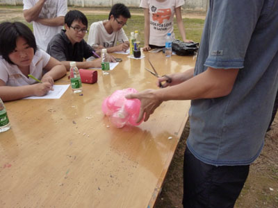 这次大赛有24组选手参赛,比赛内容主要是扔鸡蛋,讲解理念,鸡蛋不破就算成功。一个个形状各异的保护装置伴着同学们一声声欢呼或叹息坠落地面,比赛达到了高潮。24组演毕,成功的有3组。分别是第四小组工管(6)班,第十二小组09工管(5)班,第十八小组土木(3)班。 期间,运用工具较精彩的要属工管(5)班,他们用多个气球包裹,外加塑料袋制成的降落伞。整个保护装置做得甚是精妙。