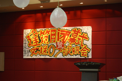 九点三十分整,伴随着欢乐的音乐声,游戏结束,主持人宣读本次建筑月闭幕式暨欢送07级晚会到此圆满结束。