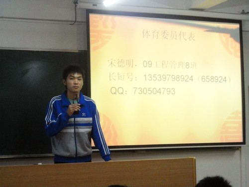 随后,组织委员代表许嘉师姐、宣传委员代表冯乐铭师兄、心理委员伍佳桂师兄、以及体育委员宋德明师兄向班干们指出了各项主要工作并指导大家如何应对并处理好班集体出现的不同状况。