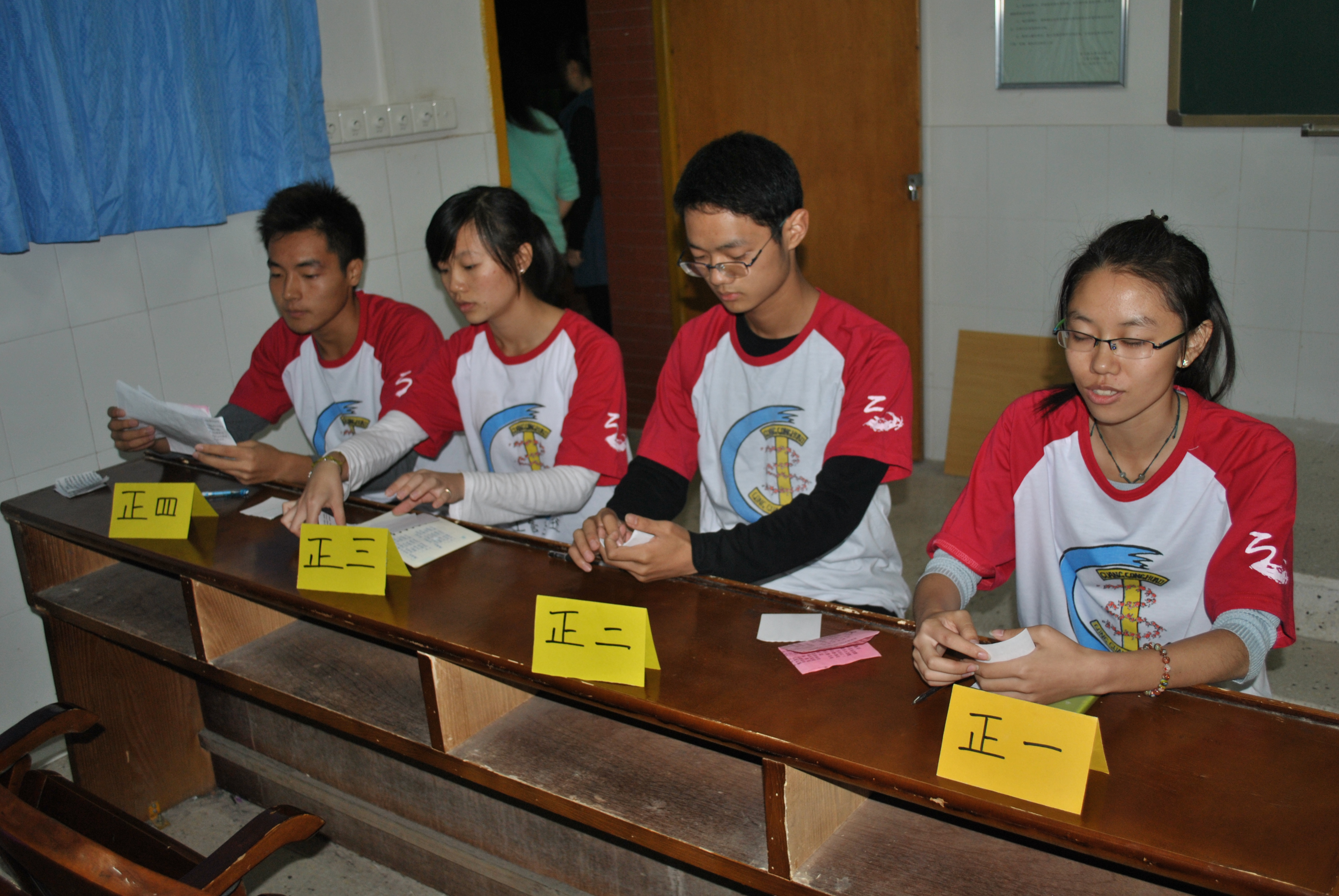 建设学部学生会副主席李嘉威师兄、记者社社长郑浩蔚师兄、信息部部长郑毅师兄、艺术团团长叶彬彬师兄、管理学部学习部副部长姚偱文师兄任本场辩论赛评委。