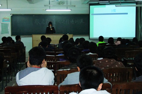 2010年12月9日晚上7时40分,一堂为两天后的敬老院之行作培训的课程准时在二号教学楼501室开课。