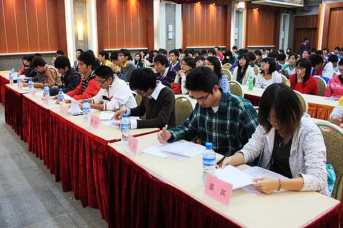 今天比赛的辩题是“世博会,是更倾向于中国看世界,还是世界看中国。”正方是10工管2班,反方是10工管3班。