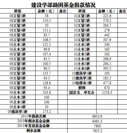 建设学部助困基金捐款统计及名单公示