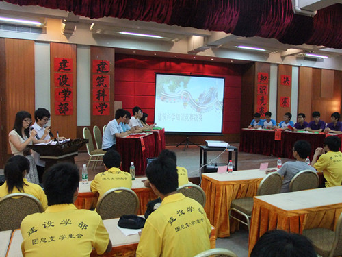 今年的“建筑科学知识竞赛”是继往年建设学部推出的鸡蛋撞地球大赛、建筑摄影、环保建模等学术性活动后推出的一项建筑月活动。活动面向建设学部的全体同学,主要是想增强同学们对室内设计、建筑人居、建筑艺术、建筑风水、建筑结构、建筑力学等建筑科学知识的认识,为让同学们在参与活动的同时学习到更多的专业知识。