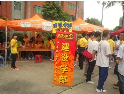 2011年9月2日到3日,是广东工业大学华立学院11届新生的报到时间,建设学部发动09届、10届迎新志愿者及学生会成员为11届新生提供服务,为了帮助其在最短的时间内找到指定地点呢或完成相应程序,尽心尽力的服务工作使迎新成员获得家长与新生的感谢和一致好评。