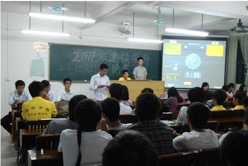首先,主持人热情地介绍了三位评委,他们分别是管理学部部长胡艺璇,外语外贸学部张颖怡以及会计学部副部长陈丽婷。待主持人介绍评委完毕后,先由正方土木4班的辩手进行自我介绍:正方一辩林李彬、二辩陈臣、三辩李春万、四辨杨子杰。之后由反方国土1班一辩黎晓琳、二辩李其伟、三辩邱雄辉、四辩卢思琪自我介绍,期间两方都说出了自己班充满气魄的口号,以示自己班必胜的决心!