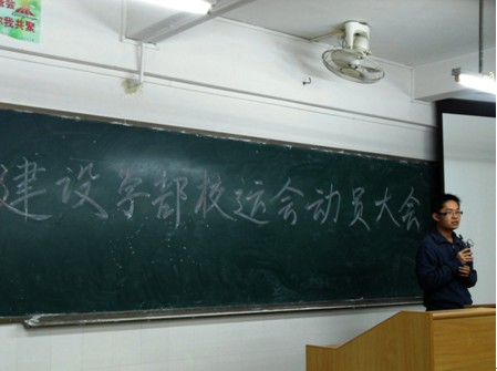 广东工业大学华立学院校运会将于2011年12月6日举行,为了让运动员们了解运动会的要求和注意事项,建设学部校运会动员大会于5日晚7:40在2号教学楼301教室举行。